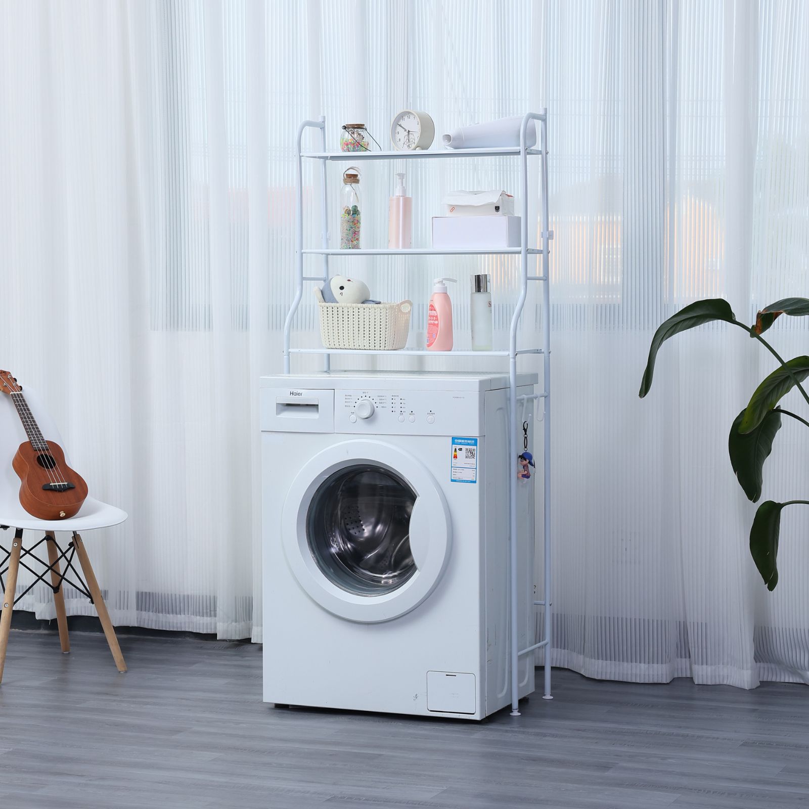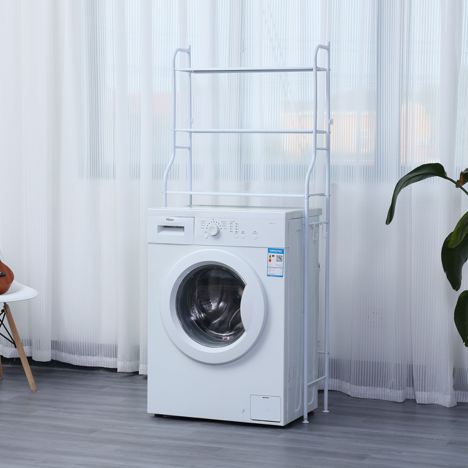 La estanteria organizadora DASCK blanca para lavadora aprovecha el espacio vertical junto al electrodomestico para maximizar el almacenaje en la lavanderia.