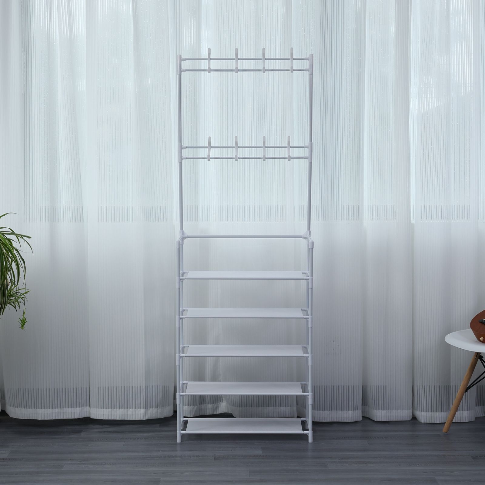 Con 5 baldas para organizar el calzado y ganchos superiores para colgar abrigos, bolsos y mochilas, lo tienes todo en un solo lugar.