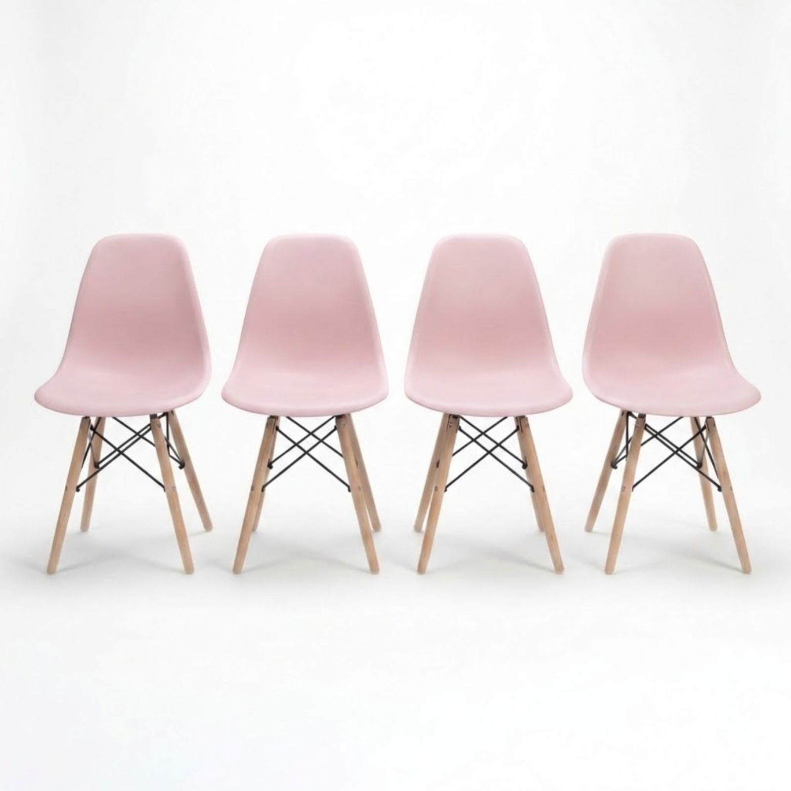 Renueva dos espacios a la vez con el Pack 2 Sillas Nórdicas DASCK Rosas. Misma elegancia escandinava, mismo polipropileno ergonómico y misma madera de haya natural — al mejor precio por unidad.