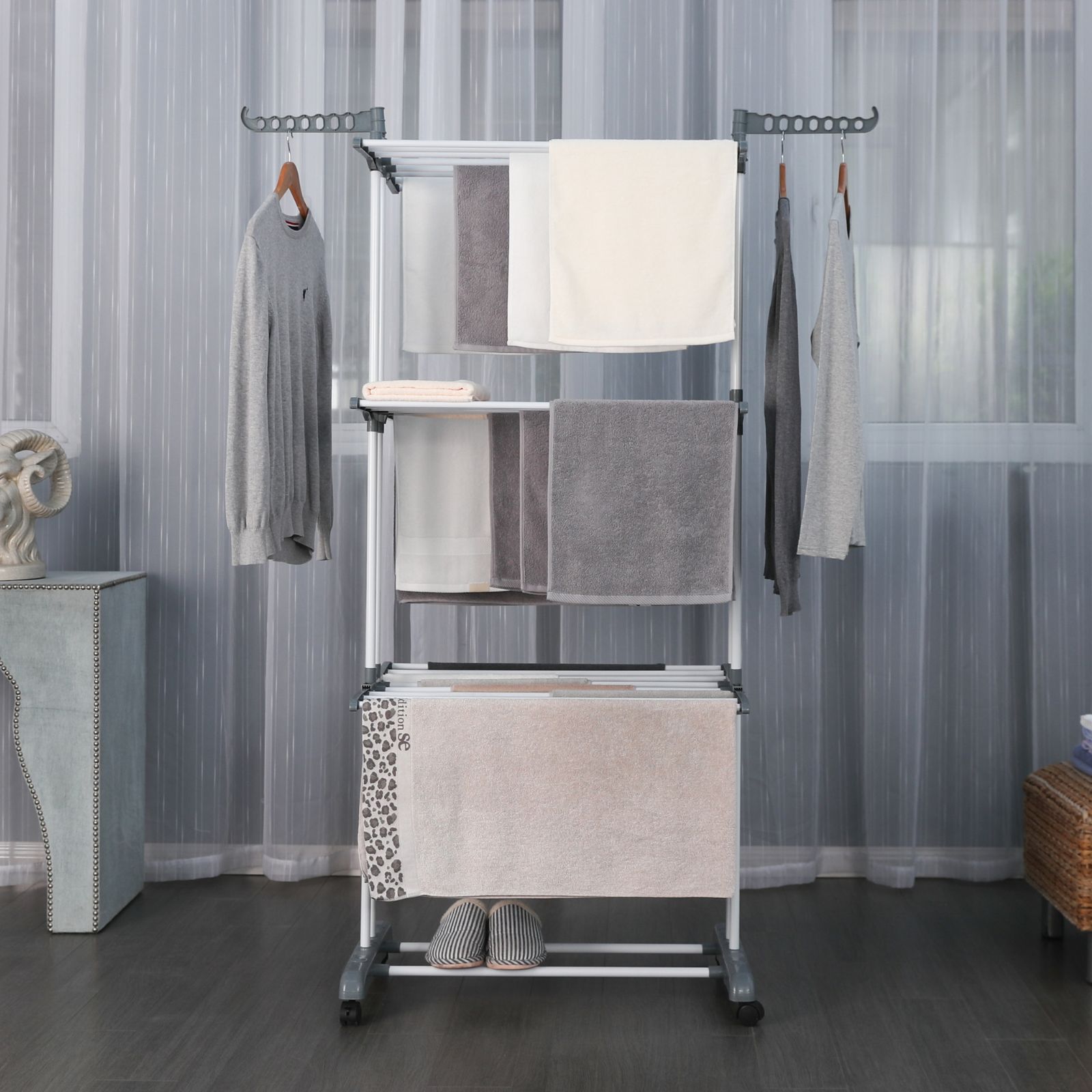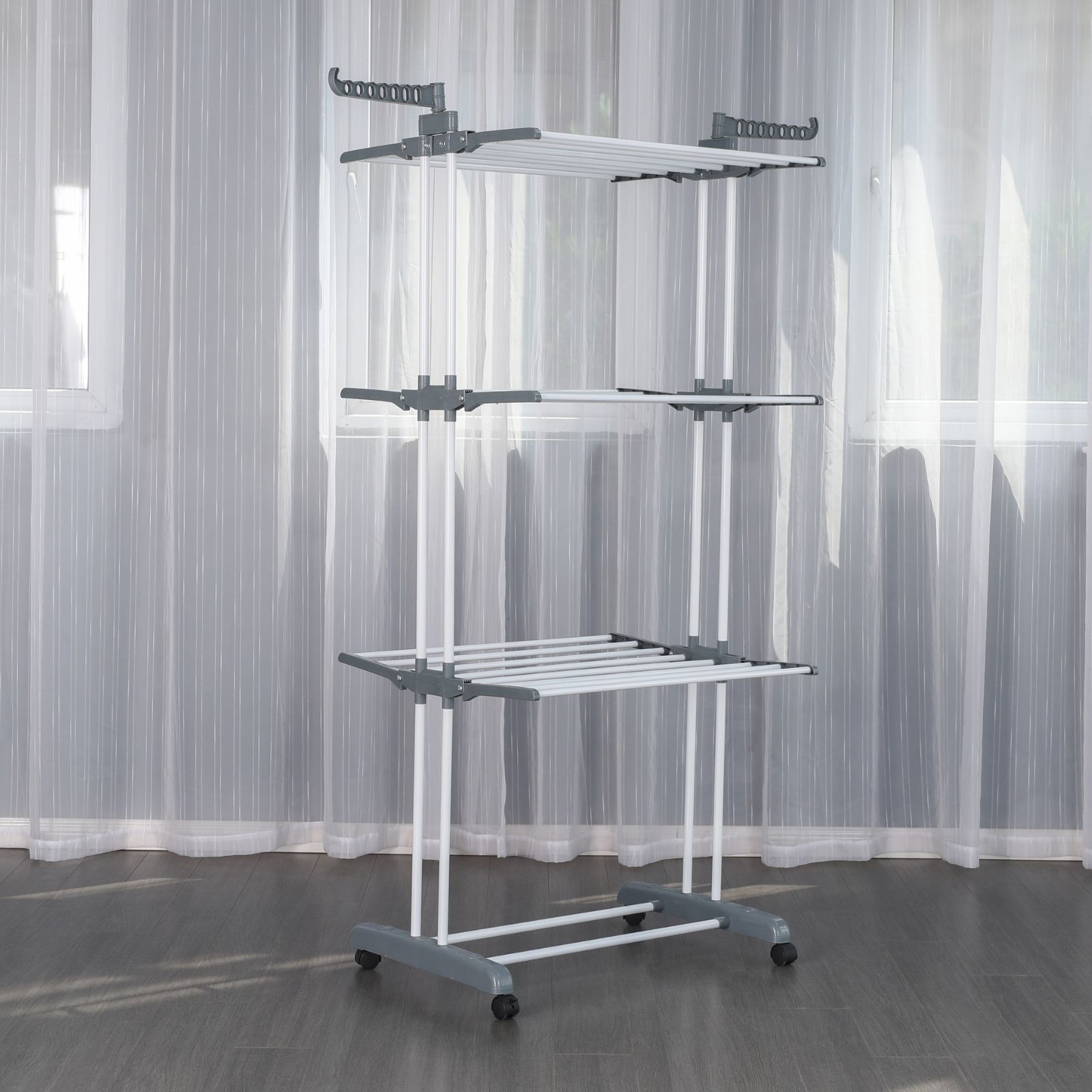 - 👕 3 NIVELES DE TENDIDO PARA COLADAS COMPLETAS – Aprovecha la altura en lugar del suelo. Los 3 niveles permiten tender sabanas arriba, camisas en el medio y ropa interior abajo.