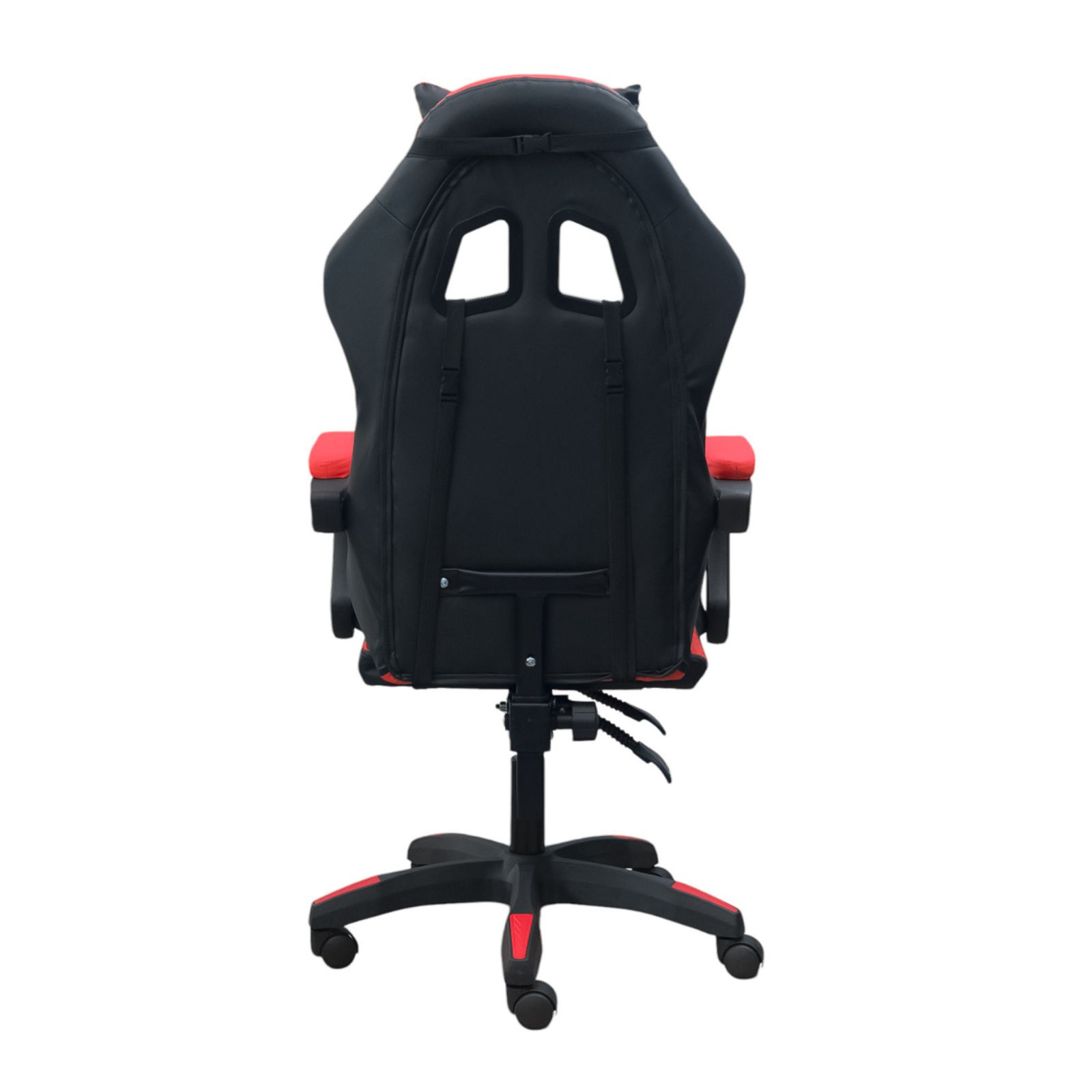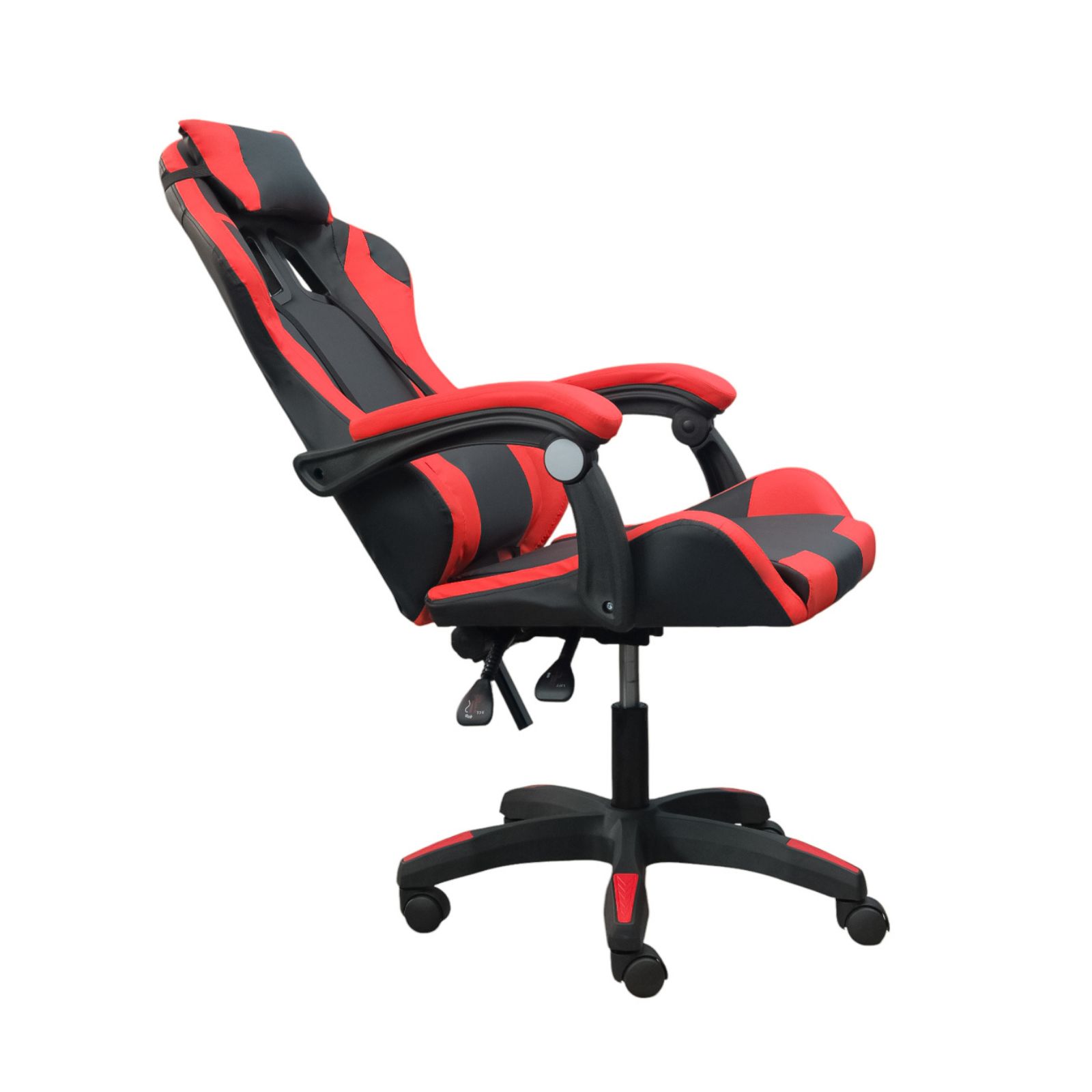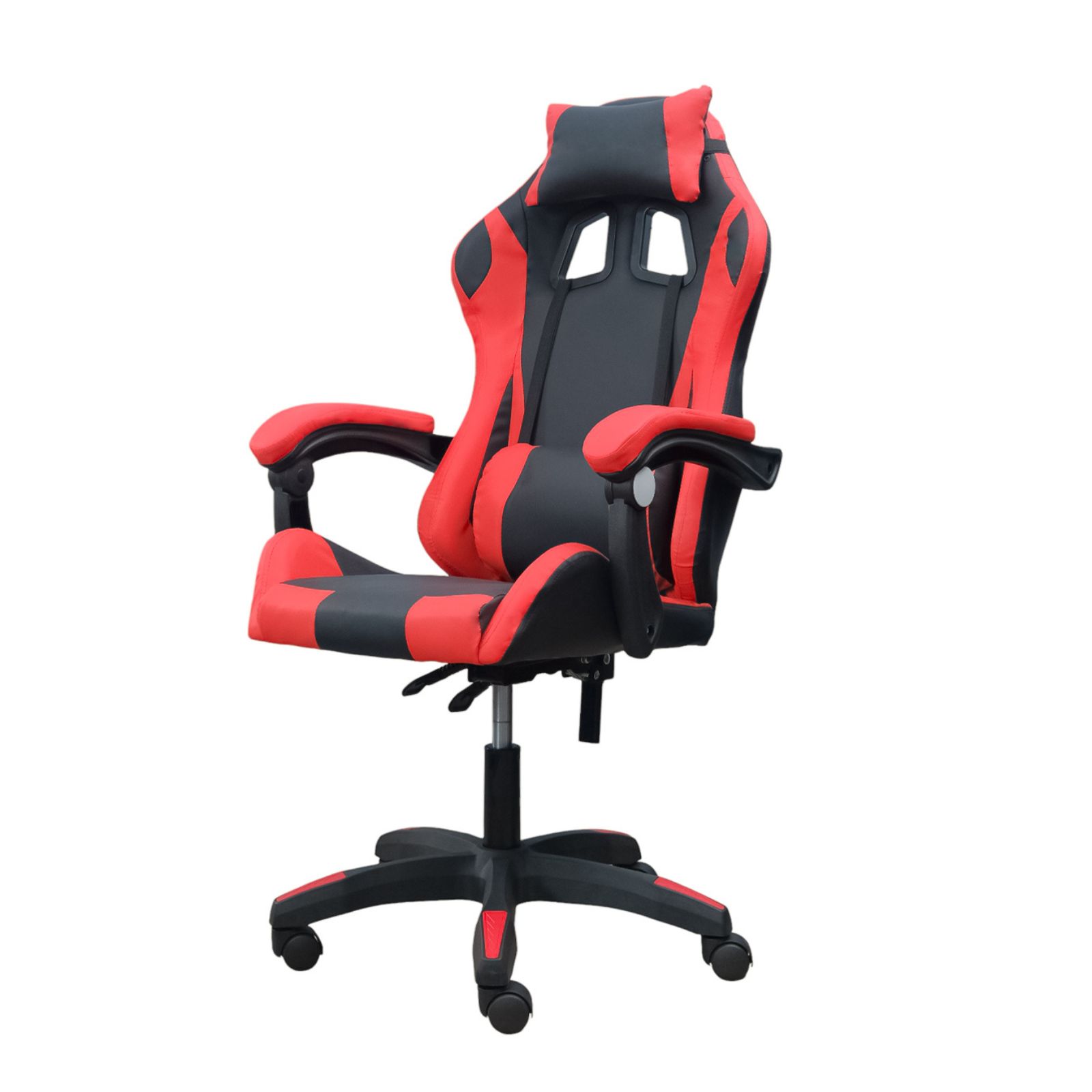 Silla DASCK Roja con reposacabezas, respaldo ajustable y soporte lumbar. Tapizado en cuero sintético, acolchado de 10 cm y base giratoria. Soporta hasta 200 kg.